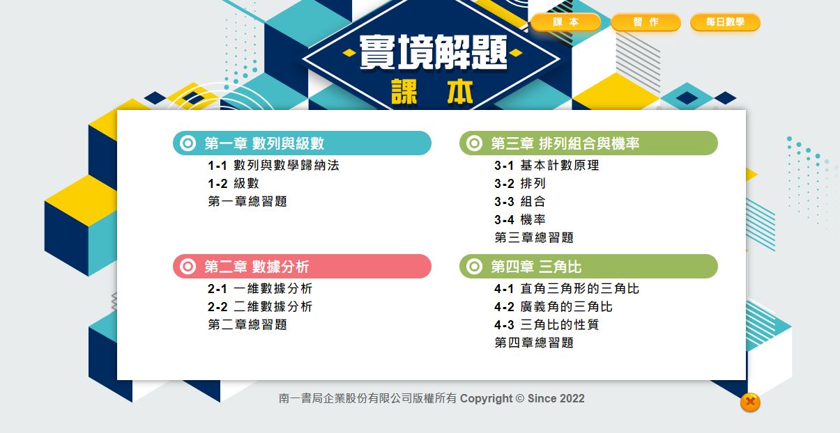 111學年下學期 高中 實境解題 南一版 數學科 1年級 教學光碟